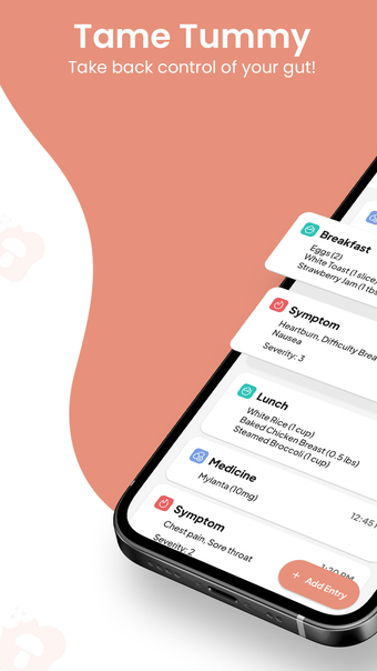 Tame Tummy is een gratis app voor iPhone die speciaal is ontworpen voor mensen met spijsverteringsproblemen zoals zuurbranden, prikkelbare darm syndroom (PDS) en gastroparese. De app stelt gebruikers in staat om hun maaltijden en symptomen bij te houden, waardoor het makkelijker wordt om patronen en triggers te identificeren die ongemak veroorzaken. Met een gebruiksvriendelijke interface kunnen gebruikers eenvoudig invoeren wat ze eten, wanneer ze het eten en welke symptomen ze ervaren.